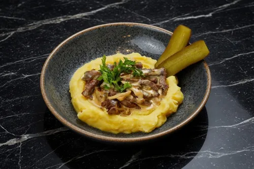 Бефстроганов с картофельным пюре
