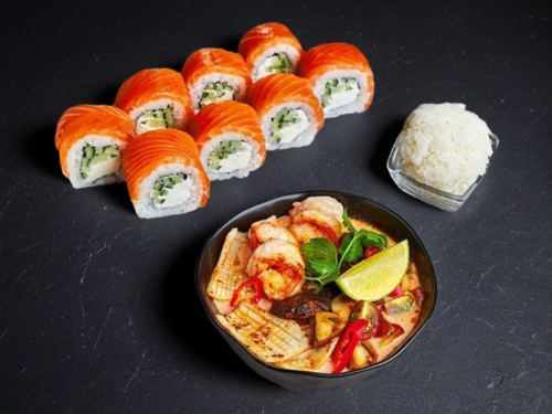 Том Ям с морепродуктами + Ролл Филадельфия с лососем